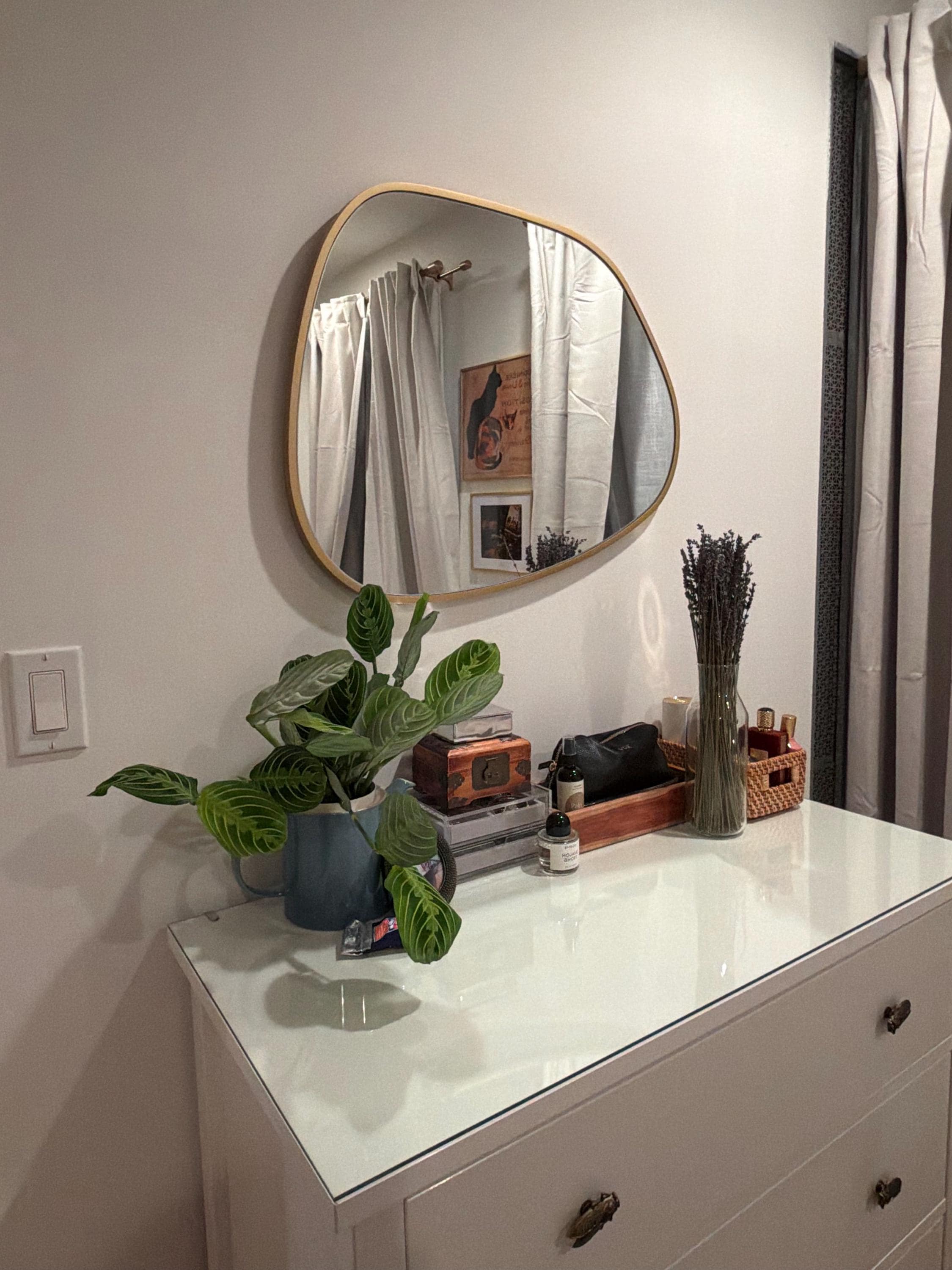 Incorporating asymmetrical mirrors into your decor can also be as simple as the placement. You can use asymmetrical mirrors as a focal point in a room or as an accent piece to add interest to a plain wall. They can be hung horizontally or vertically, depending on the space and design. This versatile piece is perfect for any room in your house, including the bathroom, living room, bedroom, and even a yoga and meditation room.