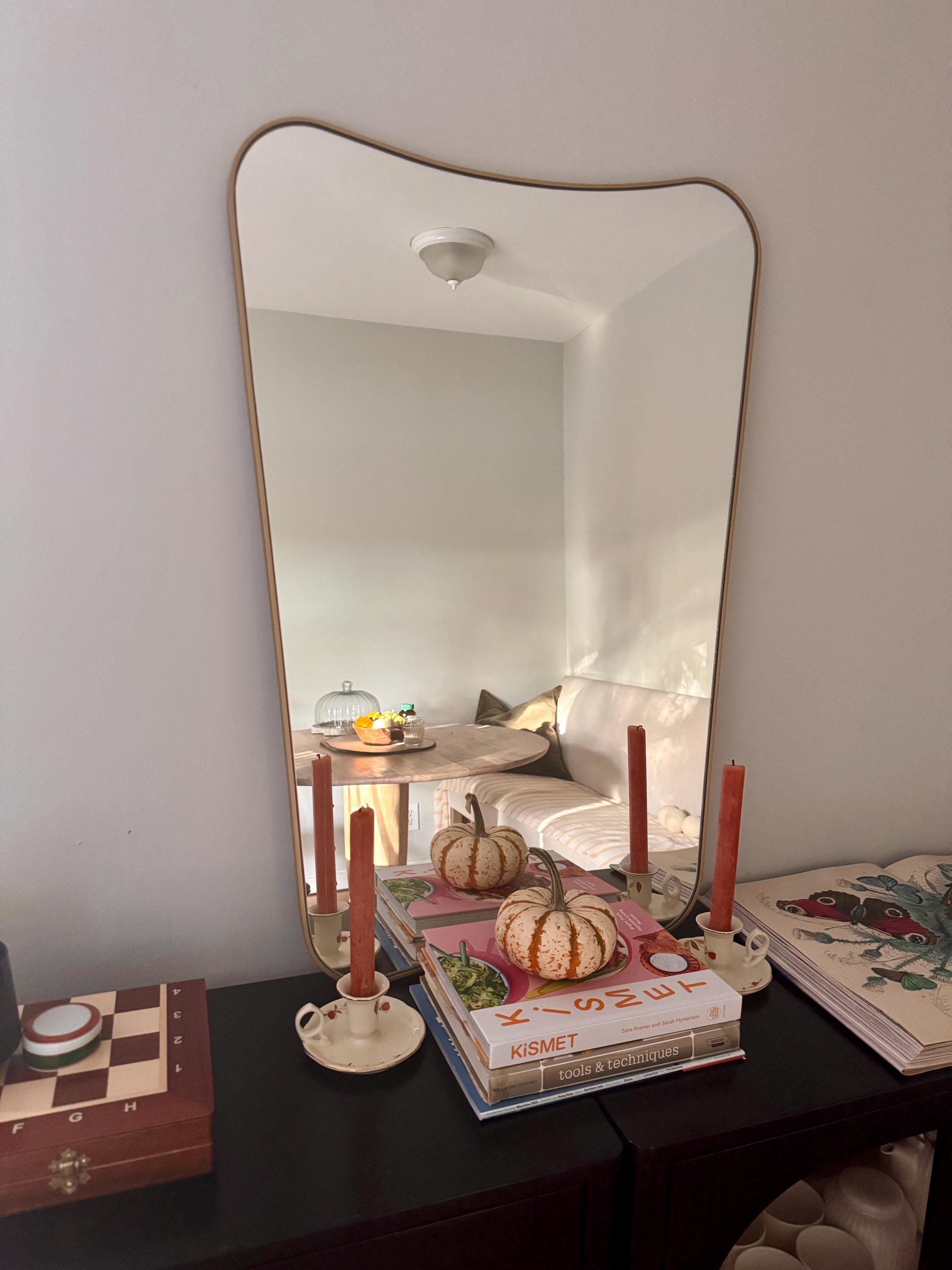 A: Absolutely! At Asmiro, we welcome the opportunity to help you envision and create a one-of-a-kind mirror that perfectly matches your space and style. Whether you're looking for a specific design, size, or frame color, don’t hesitate to reach out. Please use the "Request Custom Order" button on our Etsy shop or send us a message directly through Etsy to discuss your needs. We strive to ensure that each custom piece is crafted with precision and care. Please be aware that custom orders may require additional production time and could be subject to extra charges.