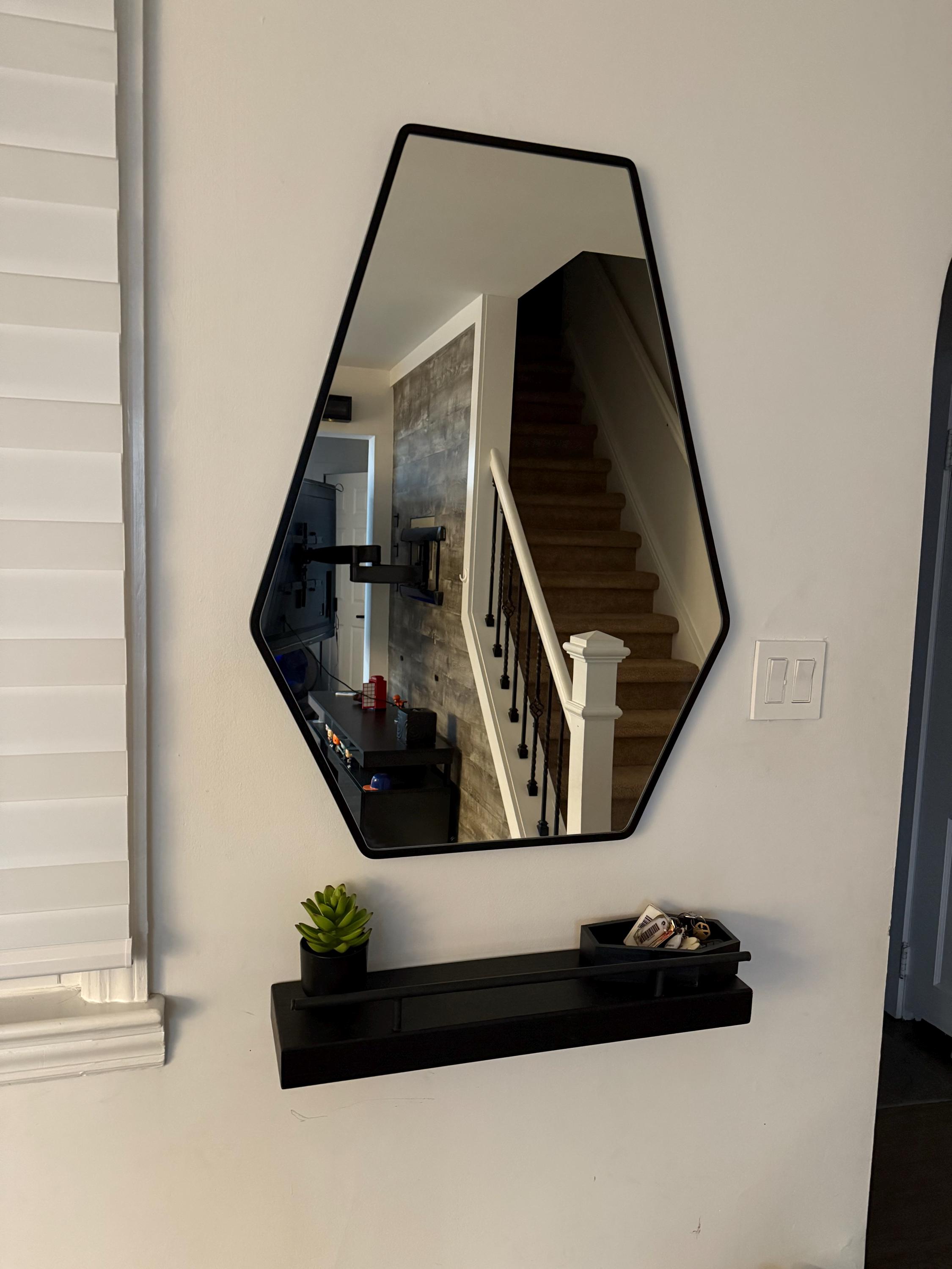 Excellent customer service. Packaged exceptionally well. Shipped very quickly. Arrived less than a week from ordering. Exceptional quality. A mirror for my entryway into house/living room with hexagon. The shape is beautiful. Highly recommend.