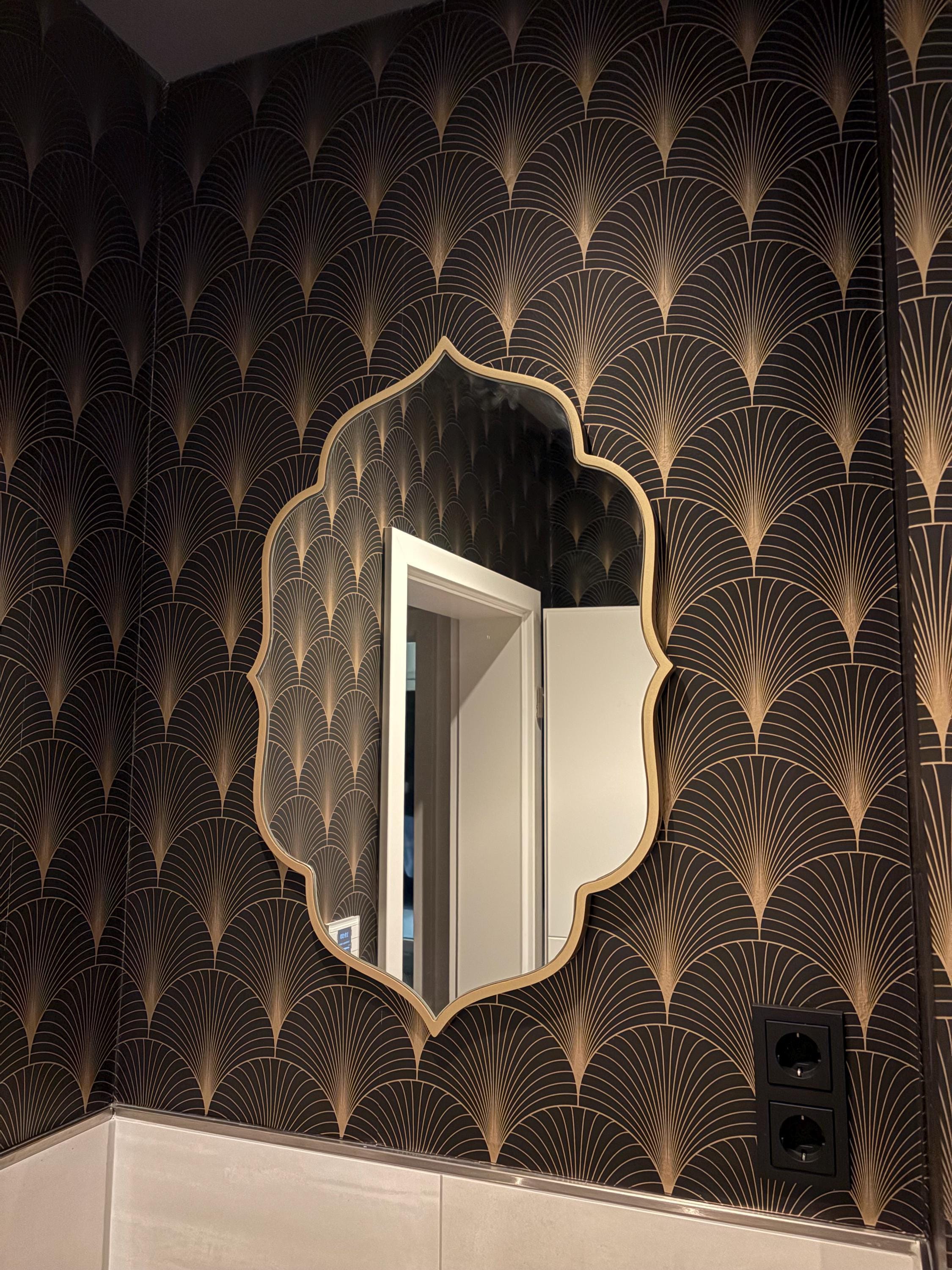 Der Spiegel ist so schön wie auf den Bildern. Bei der Größe habe ich intuitiv den größeren -der für mich passenden Varianten- entschieden. Bin happy!