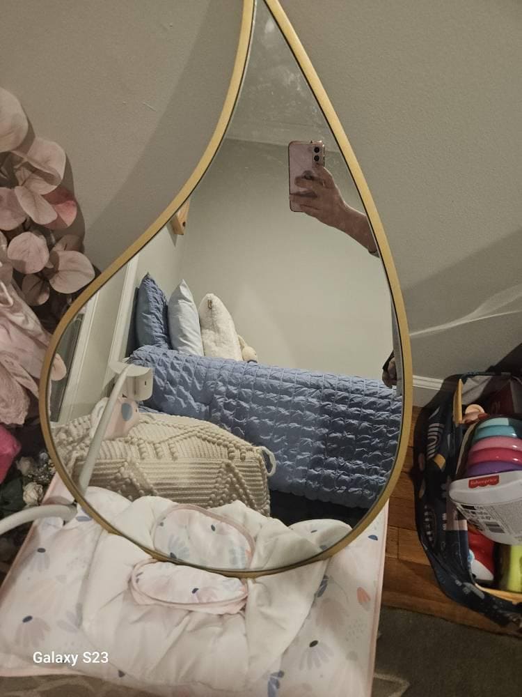 With its teardrop shape, reminiscent of a water droplet frozen in time, this mirror is a seamless blend of natural elegance and modern design. It's not just a mirror—it's a conversation piece that can be hung traditionally or upside down for a unique perspective, echoing the versatility of water itself.